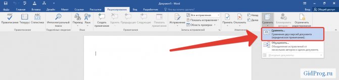 - Переходим во вкладку «Рецензирование», в разделе «Сравнение» нажимаем «Сравнить»