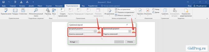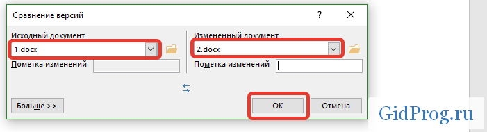- После того как выбрали две версии текстового документа, нажимаете «ОК»